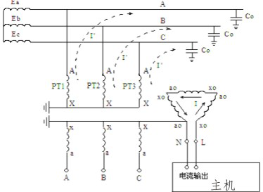 測(cè)試儀是從PT 開口三角側(cè)來測(cè)量配網(wǎng)的電容電流的。其測(cè)量原理如圖所示。